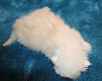 White Female Born (pink collar) Copper Eyes Born 10-31-25. She can go home on 12-26-25
